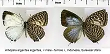 Arhopala argentea, is a butterfly in the family Lycaenidae. It was described by Otto Staudinger in 1888. It is found in the Indomalayan realm where it is found in Celebes and the Philippines.[2]
