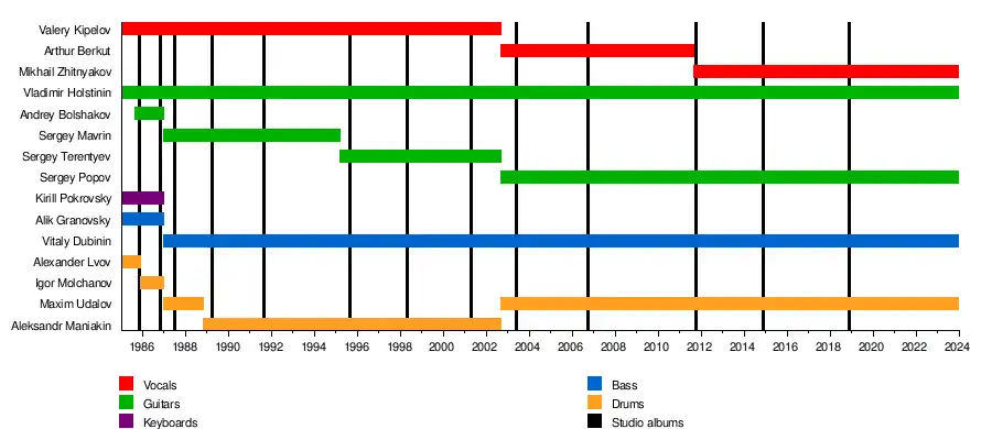 | Past members | Valery Kipelov Sergey Mavrin Sergey Terentyev Alik Granovsky Andrey Bolshakov Alexander Maniakin Arthur Berkut Kirill Pokrovsky |