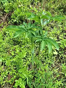 The species tends to grow in evergreen and deciduous riparian forests, shrublands, wetlands (inland) or grassland where shade is available and moisture is retained.[1][7] It is closely associated with flood plains and prefers humus-rich and well-draining soil. The tuber is intolerant to low temperatures.[1] In Japan, it is considered a threatened species due to the loss of riparian forest along the major rivers of Kanto Plain.[8]