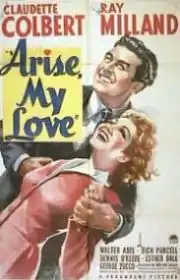 Arise, My Love is a 1940 American romantic comedy film directed by Mitchell Leisen and starring Claudette Colbert, Ray Milland and Dennis O'Keefe. It was made by Paramount Pictures and written by Billy Wilder, Charles Brackett and Jacques Théry. Containing an interventionist message, it tells the love story of a pilot and a journalist who meet in the latter days of the Spanish Civil War and follows them through the early days of World War II.[1] Colbert once said that Arise, My Love was her personal favorite motion picture of all the films she had made.[2][3] [Note 1]