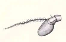 The presence of an arista is a feature of the Diptera (flies) suborder Brachycera and may be especially well-developed in some species.[2] It is also present in some members of Hemiptera (true bugs), specifically in the suborder Auchenorrhyncha.[3] The arista is often covered in multiple kinds of sensilla, or sense organs, such as chemo, hygro, and thermoreceptors, which allow the insects to detect changes in their environment.[4]