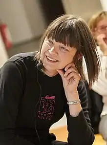 Arja Kajermo's debut novel The Iron Age was published by Tramp Press 2017.[3] The novel with illustrations throughout by Susanna Kajermo Törner grew out of a story shortlisted for the Davy Byrne's Short Story Award 2014.[4] It is partly based on Kajermo's own childhood in post-war Finland and Sweden.[2] The Iron Age was longlisted for the Republic of Consciousness Prize and was one of 20 on the Walter Scott Prize recommended reads (2018)[5]