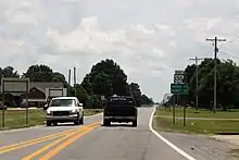 Highway 130 connects Stuttgart and DeWitt, the two county seats of Arkansas County. Despite estimated travel times similar to US 165 between the cities, US 165 receives three times more vehicular traffic as a mainline route across Southeast Arkansas.[lower-alpha 1] The route is a rural, two-lane road its entire length, except near the western terminus in Stuttgart.[1] Highway 130 is entirely within the Grand Prairie, a subset of the Mississippi Alluvial Plain ecoregion known for rice cultivation and duck hunting.[4]