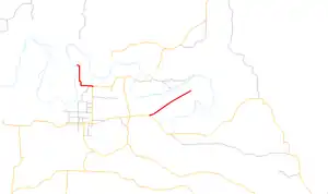 Arkansas Highway 210 (AR 210 and Hwy. 210) is a designation for two east–west state highways in Cleburne County, Arkansas. One segment of 0.82 miles (1.32 km) runs in Heber Springs from Greers Ferry Lake east to Heber Springs Road (Highway 25B) as Case Ford Road.[1][2] A second segment begins at Highway 110 and runs northeast as Industrial Park Rd.[3]