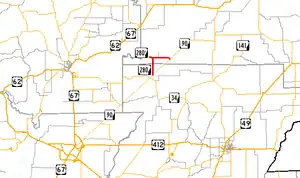Arkansas Highway 280 is a state highway in Clay and Greene Counties. The route runs 5.85 miles (9.41 km) from Arkansas Highway 90 near Delaplaine north then east to AR 90 in Peach Orchard.[2][3] It does not intersect any other state highways.