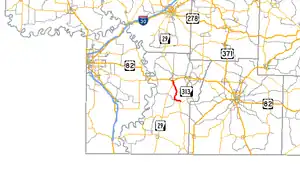 Arkansas Highway 313 is a north–south state highway in Lafayette County. The route runs 9.00 miles (14.48 km) from Arkansas Highway 53 north to Arkansas Highway 29 in Lewisville.[2] The route does not intersect any other state highways.