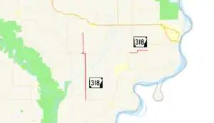 Highway 318 (AR 318, Ark. 318, and Hwy. 318) is a designation for two state highways in Phillips County, Arkansas. One route of 4.39 miles (7.07 km) begins at Highway 85 at Oneida and runs east to Highway 44. A second route of 15.12 miles (24.33 km) begins at Highway 1 and runs east to Highway 20. A portion of the route between Watkins Corner and Lambrook is designated as part of the Great River Road National Scenic Byway.