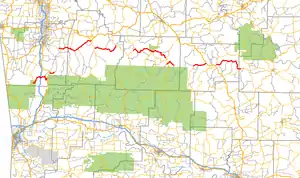 | Washington | Devil's Den State Park | 0.0 | 0.0 | Western terminus | |||