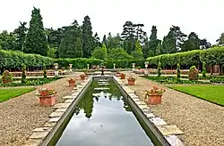 The gardens and arboretum lie to the north-west of the house. Of the four compartments of the kitchen gardens, dating from the 18th and 19th centuries, the south-east compartment was developed in the 1960s into the Italian garden.[1]