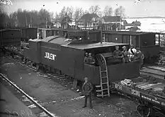 On November 29, 1938, the Armored Train Regiment celebrated the 20th anniversary of the armored trains of Estonia, which date back to 1918 during the Estonian Independence War.[5] Major General Aleksander Pulk, commander of the 1st Division spoke at the regiment's sports field. Around 100 veterans who were personnel of the armored trains during the Independence war attended. A parade was held on the regiment's sports field. Lunch was offered to the veterans after the parade. Colonel Karl Parts, who led and organized armored trains during the Independence War, gave a speech about Rear Admiral Johan Pitka, who is often called "the father of the armored trains".[6] Parts ended his speech by remembering the fallen personnel of the Armored trains in the Independence War and the actions of Captain Anton Irv, who died in 1919. Other military figures, including General Johan Laidoner, Lieutenant general Paul Lill, and Lieutenant general Nikolai Reek sent telegrams. The celebration continued until the next day on November 30, 1938.[2]