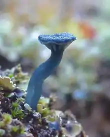 Arrhenia chlorocyanea, commonly known as the verdigris navel,[3] is a species of agaric fungus in the family Hygrophoraceae. Originally named as a species of Agaricus in 1885,[4] and later classified as a member of Omphalina, the species was transferred to the genus Arrhenia in 2002. It is found in Europe and North America.[5]