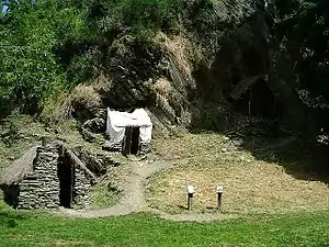 The Arrowtown Chinese Settlement is a heritage listed, historic village located in Arrowtown, New Zealand and set up by Chinese people during the Otago Gold Rush of the 1860s. The settlement is sometimes referred to as a village and has been restored and is now a common tourist attraction. It is close to Arrowtown on the banks of Bush Creek which is a tributary of the Arrow River.[1][2]