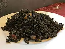 There are many other related dishes to the arroz negro. Some of them are the risotto nero[2] (Venice, Italy), octopus with black rice and shrimp Archived 2017-11-01 at the Wayback Machine,[3] and some others.