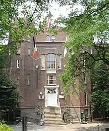 The Arsenal is a symmetrical brick building with modestly Gothic Revival details, located in Central Park in New York City adjacent to the Central Park Zoo. It is centered on 64th Street west of Fifth Avenue. Built between 1847 and 1851 as a storehouse for arms and ammunition for the New York State Militia, the building is the second-oldest extant structure that was constructed within Central Park, predating the park's construction.[1] Only the 1814 Blockhouse No. 1 is older.