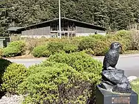 The first national park visitor centre was built in Arthur′s Pass in 1959, with the help of the Christchurch Wanderers Tramping Club. It was designed by Christchurch architect Paul Pascoe and used local stone to reflect the geology of the national park.[17] As well as Department of Conservation offices, the building housed museum displays on the history of Arthur's Pass (including Richard Seddon's stagecoach) and archives detailing the history of the National Park. In 2019 the building was declared earthquake prone, and the visitor centre was moved to a portacabin across the road. The cost to upgrade the building to the required standard was estimated at NZ$3 million.[18]