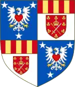 On 23 November 1937, Lord Kintore married the American heiress Helena Montagu, Duchess of Manchester (1878–1971).[4] Helena, the only child of Eugene Zimmerman of Cincinnati, Ohio (a railroad president and major stockholder in Standard Oil),[5][6] was the divorced wife of William Montagu, 9th Duke of Manchester.[7] From her first marriage, she was the mother of four, including Alexander Montagu, 10th Duke of Manchester.[8]