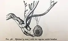 Arthur Smith illustration of Episinus egg sac from 'The World of Spiders' by William Syer Bristowe