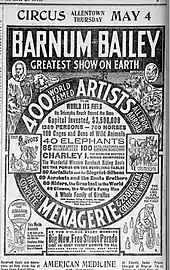 Atherton moved between circuses during his career due to demand, and in 1914 he formed part of the Ringling Circus sideshow.[13] In 1919, this circus merged with Barnum and Bailey, and was relaunched as the Ringling Bros. and Barnum & Bailey Circus. He claimed to have weighed 38 pounds (17.24 kg) and measured 3.5 inches (8.9 cm) around the biceps, 16 inches (41 cm) inches around the waist, 6.25 inches (15.9 cm) around the thigh, and wore US size 3 shoes, and size 6 gloves.[10][14] He also claimed to be healthy, with no absences from his professional work, eating at regular intervals, and making no attempts to limit his food intake. When challenged by reporters, he justified his build to being simply “small boned”.[15][16]