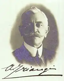 Arturo Corrado Luigi Triangi, Conte di Maderno e Laces (18 February 1864 in Fiesole – 3 March 1935 in Florence) was an Italian admiral. He was also a member of the Senate and briefly Minister of the Navy in the Boselli government. A count of the Holy Roman Empire, his title was officially recognised in Italy by a ministerial decree of 8 April 1925.