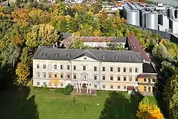 • Schloss Aschach': The manor house is the former seat of the Counts of Harrach. The main wing of the manor house from the 16th Century has arcades in the courtyard on all three floors. The east wing was built in 1709 by Johann Lucas von Hildebrandt, as well as the altar in the chapel. The castle is privately owned.