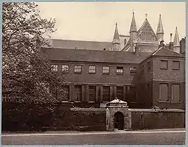 There has been a building on the site since the eleventh century. The current house incorporates the remains of the mediaeval Prior's House, and its garden is the site of the monks' refectory and some of the earliest sittings of the House of Commons, such as when they met in the refectory to impeach Piers Gaveston in the time of Edward II.[4] The masonry embrasures in the front room on the ground floor expose the house's mediaeval origins from before the sixteenth-century dissolution of the Monastery, and perhaps from before the Conquest.