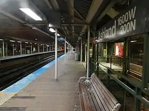 Ashland station opened on November 6, 1893, as part of the Lake Street Elevated Railroad's initial route,[2] and it is one of the oldest standing stations on the 'L'. The station closed on April 4, 1948, along with nine other stations on the Lake Street branch,[3] but later reopened on February 25, 1951, the same day the Milwaukee-Dearborn subway opened for service.[4] During the two-year closure of the Green Line from 1994 to 1996, the station was restored and elevators were added to make the station accessible to passengers with disabilities.