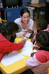Biden works as a social justice activist and social worker.[16] After finishing graduate school, she gained a job at West End Neighborhood House, a non-profit organization, as their Employment and Education Liaison for adjudicating youth developing various employment and job skills training programs.[18][13] She worked as a social worker in the Delaware Department of Services for Children, Youth, and Their Families for fifteen years.[17][3] While working for the department, Biden created programs for youth focusing on juvenile justice, foster care, and mental health.[17] In 2008 she was listed in Delaware Today's "40 People to Watch" for her work in the department.[20] In 2012, she joined the Delaware Center for Justice as an associate director, focusing on criminal justice reform in the state.[17][12][4] She helped establish and run programs and services at the center focused on public education, adult victim services, gun violence, incarcerated women, and community reentry.[18] Overseeing all direct servicing programs at the center, Biden worked with victims of crime, adjudicated youth, elderly prisoners, adults on probation and parole, truant youth, and Pennsylvania courts of common pleas clients who were eligible for mediation.[18] In 2014, she was promoted to executive director of the center, and served in that capacity until 2019.[17][21] She implemented a program called SWAGG: Student Warriors Against Guns and Gangs, endorsed by the Office of Juvenile Justice and Delinquency Prevention, which provides educational resources and community-based support groups aimed at eliminating violent crimes and gang activity among youth in New Castle County.[18]
