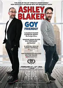 - ↑ "Ashley Blaker: Strictly Unorthodox (Closed June 28, 2018) | Off-Broadway | reviews, cast and info | TheaterMania".