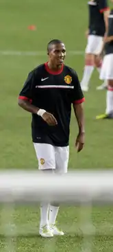 He made his league debut for United against West Bromwich Albion on 14 August 2011, setting up the first goal for Wayne Rooney and forcing an own goal after a run down the left flank and cross, in a 2–1 away win.[32] He scored his first two goals for United on 28 August in an 8–2 victory against Arsenal at Old Trafford. Both occurring after cutting inside from the left flank and bending two right foot shots into the far corner. Young made his debut in the UEFA Champions League on 27 September 2011, scoring a headed goal in the 90th minute to help Manchester United to a 3–3 draw against Basel. After a long-term injury, Young returned on the field at Stamford Bridge in a 3–3 Premier League draw against Chelsea on 5 February 2012. On 16 February, he scored a goal for the lead in a Europa League 2–0 away win against Ajax at the Amsterdam Arena. On 4 March 2012, Young scored two goals and made an assist against Tottenham Hotspur at White Hart Lane in a 3–1 Premier League win.[33] On 2 April, he scored in a 2–0 win against Blackburn Rovers at Ewood Park.[34]