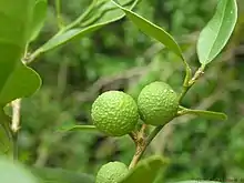 The genus is placed in the subfamily Aurantioideae, which also includes the genus Citrus.[4] It has been placed in the tribe Aurantieae and subtribe Citrinae, which are known as the citrus fruit trees.[2][5] Atalantia and the genus Citropsis are also called near-citrus fruit trees.[2]