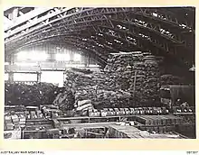 13 AAOD was divided into four depots, including a Returned Stores Depot (RSD).[29][30] It also included a salvage area, a vehicle park; and workshops.[31] Units at 13 AAOD included 5 Australian RSD, 1 Australian Advanced Workshop Salvage Unit, 7 Australian Ordnance Vehicle Park, 3 Australian Advanced Base Workshop Australian Electrical and Mechanical Engineers (AEME), 124 Australian Forward Ordnance Depot, and 73 Australian Field Ammunition Depot.[32][33] Just to the north was 7 Australian Advanced Ammunition Depot.[34][35][1]