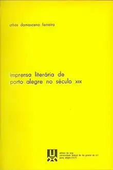 Athos Damasceno Ferreira (Porto Alegre, September 3, 1902 – Porto Alegre, April 14, 1975) was a Brazilian poet, novelist, chronicler, translator, journalist, literary critic, and historian. He is considered the most important historian and chronicler of the city of Porto Alegre, is the founder of art historiography in the state of Rio Grande do Sul, and left a major contribution to the state historiography in the fields of culture and society, being a pioneer in the study of several themes. He was an advocate of the revaluation of regionalisms and a renowned poet and novelist, although being little remembered in this area.