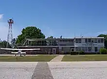 Over the next several decades, many improvements were made to the airport in the general aviation field. A new terminal and administration building was constructed in 1950, consisting of both enclosed and open flight decks, a restaurant, flight ready rooms, classrooms, and operations offices with local, state, and federal funds. Also in the 1950s, medium-intensity runway lights were installed, runways were resealed, and an access road to Glenn Avenue was constructed.