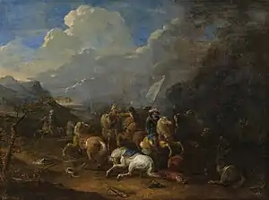 He painted primarily soldiers and battle scenes.[1] He was first instructed by his father, Tobias Querfurt, a landscape and animal painter, and afterwards studied under Rugendas at Augsburg. He painted encampments, battles, skirmishes of cavalry, and hunting subjects, in all of which he appears rather as an imitator than as an original painter. He sometimes imitated the manner of Bourguignon , Parrocel, and Van der Meulen, but more especially sought to form his style after Wouwerman. He died at Vienna in 1761.