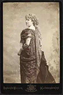 Augusta Sophie Wilhelmine Lütken née Schou (1855–1910) was a Danish operatic soprano who, despite her lack of formal schooling, became one of her country's most popular singers in the nine short years she performed at Copenhagen's Royal Danish Theatre.[1] As a result of poor health, she was forced to retire in 1885 although she returned to make a few appearances in the 1890s.[2][3]