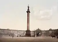 In 1836–1837, Montferrand completed the Palace Square with fencing and gas lights. He prepared five different designs for the building terminating the eastern side of the square, but the Guards Corps building was awarded to Alexander Brullov.[15]