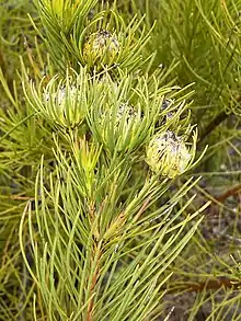 Aulax pallasia, the needle-leaf featherbush, is a species of shrub in the genus Aulax. It is native to the Western Cape, South Africa.