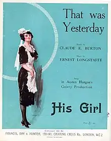 For George Grossmith Jr. and Edward Laurillard he directed the musical comedy To-Night's the Night, which opened at the Shubert Theatre in New York in December 1914[5] and then at the Gaiety Theatre in London, opening in April 1915. He next directed Theodore & Co (1916), which ran for 503 performances. Again for Grossmith and Laurillard he wrote the book with George Arthurs for Yes, Uncle! (1917), which ran for a very successful 626 performances. With Herbert C. Sargent he wrote Girl Wanted (1916) for the London Opera House,[6] while with George Arthurs he wrote the book for the musical Suzette;[7] the English version of the operetta Arlette (1917) at the Shaftesbury Theatre, with songs by Ivor Novello,[8] and The Girl for the Boy (1919), an adaptation of Paul Gavault's La Petite Chocolatière. He produced and directed Ivor Novello's comic opera The Golden Moth (1921) at the Adelphi Theatre[9] and his own His Girl (1922) at the Gaiety, but both had only moderate success, and he retired.[4]