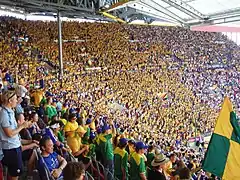 The first match between the two teams was played at the 1956 Olympics, ending in a 2–0 win for the Australians.[3] Another dozen matches were played between Australia and Japan until a semi-final match at the 2001 Confederations Cup which ended in a 1–0 for Japan, but the match-up really only emerged as a rivalry after 2006, when Australia joined the AFC, especially the FIFA World Cup qualification games. The first match between the two sides after this was during the 2006 FIFA World Cup, a group stage game where Australia were still technically competing as Oceania representatives. With just six minutes left, Japan led by a single goal, only for Australia to score thrice in succession to secure their first ever win in a World Cup Finals match in what is regarded as one of the greatest moments in Australian sporting history.[4]