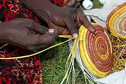 Pandanus and sand-palm are used in areas such as the Daly River region and Arnhem Land to weave carry baskets, dilly string bags, wall hangings, fibre sculpture, floor mats and fish nets. The women of Peppimenarti and Gunbalanya are famous for such weaving: each community has their own distinct styles and techniques.