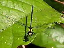 Austroargiolestes aureus is a species of Australian damselfly in the family Megapodagrionidae,[3] commonly known as a tropical flatwing.[4] It is endemic to north-eastern Queensland, where it inhabits streams in rainforest.[5]