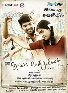 Aval Peyar Thamizharasi (transl.Her name is Thamizharasi) is a 2010 Tamil-language romantic drama film written and directed by Meera Kathiravan and produced by Moser Baer. The film stars Jai, Nandhagi, Dhiyana, S. Theodore Baskaran and Ganja Karuppu in lead roles. The music was composed by Vijay Antony with cinematography by P. G. Muthiah and editing by Raja Mohammad. The film was released on 5 March 2010 and failed commercially.[1]