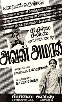 Avan Amaran (transl. He is immortal) is a 1958 Indian Tamil language film produced and written by Nagercoil S. Nagarajan, and directed by S. Balachander. The film stars K. R. Ramasamy, P. Kannamba, Rajasulochana and T. S. Balaiah.[2] It was released on 23 May 1958.