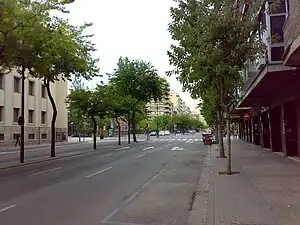 Avinguda Prat de la Riba, formerly called Avenida del General Mola in Francoist Spain, is one of the main avenues of the city of Lleida. It is 2.5 km in length and 25 meters wide, with 3 lanes in each traffic direction. It is named after the Catalan politician Enric Prat de la Riba, whereas its former namesake was Emilio Mola. When created, it was a merely 805 meters long originating at Plaça de Ricard Viñes and ending by Carrer del Príncep de Viana. Years later, with the expansion of the neighbouring Pardinyes district, the street grew to reach the railway tracks. The latest addition to Prat de la Riba was a bridge and green area covering the now-underground railway tracks.[1]