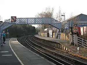 Aylesford railway station is on the Medway Valley Line in Kent, England, serving the village of Aylesford. It is 38 miles 74 chains (62.6 km) down the line from London Charing Cross via Strood and is situated between New Hythe and Maidstone Barracks. The station opened on 18 June 1856.