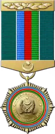Medal “100th anniversary of the Azerbaijani army” (Azerbaijani: Azərbaycan Ordusunun 100 illiyi (1918–2018) medalı) is a state award of Azerbaijan dedicated to the 100th anniversary of the Azerbaijani army. The award was established on June 30, 2017, in accordance with the law numbered 760-VQD.[1][2]