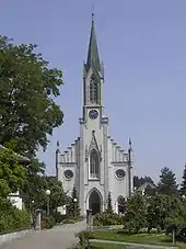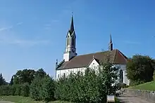 In 1328 the village church, under the authority of Muri Abbey, was incorporated. In 1412 the church was given Saint George as a patron saint. Today's neo-Gothic parish church building was built in 1862 at the northern exit of the village. It replaced the earlier church from 1508.[3]