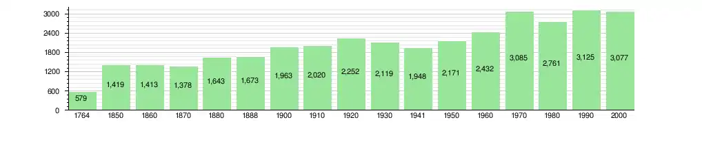 As of 2014, children and teenagers (0–19 years old) make up 20.9% of the population, while adults (20–64 years old) are 61.3% and seniors (over 64 years old) make up 17.8%.[7] In 2015 there were 1,500 single residents, 1,532 people who were married or in a civil partnership, 199 widows or widowers and 306 divorced residents.[11]