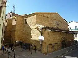 On the site of the bath, the Lusignan church of St. George of the Latins was constructed from 1306 to 1309, and opened with great festivities.[1] The church was the site of two important events in the 14th century. On 10 November 1330, Nicosia was struck by a flood of the Pedieos River, which then flowed inside the city walls. The flood caused the death of 3,000 people and the place up to where the water of the river rose is still marked with a nail from the Lusignan period. On 17 January 1369, the church was the site of a conspiracy when some knights plotted to kill King Peter I of Cyprus. According to Kevork Keshishian, the church was in close proximity of the royal palace and thus was of great importance, and its parishioners were called "Halfcastes" as they were children of mixed marriages between the Latins and the Syrians.[2]