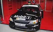 Converted from a roadcar into a racing machine, the car missed the first meeting at Brands Hatch, but appeared at Thruxton for the second event of the season [4] and made an instant impression with its all-black paintjob. Initially driven by Kurt Luby, he stepped down after round 12, and was replaced by Brazilian Thomas Erdos, originally contracted to drive a second IS200, but construction of a second chassis was never undertaken. The Lexus was a reasonably competitive machine, taking several top six finishes behind the works Vauxhalls, usually competing with the works Peugeot 406 Coupes. Autocar magazine journalist Steve Sutcliffe drove in the final two rounds at Brands Hatch,[5] but struggled in the wet conditions, finishing 9th in the sprint race.[6]